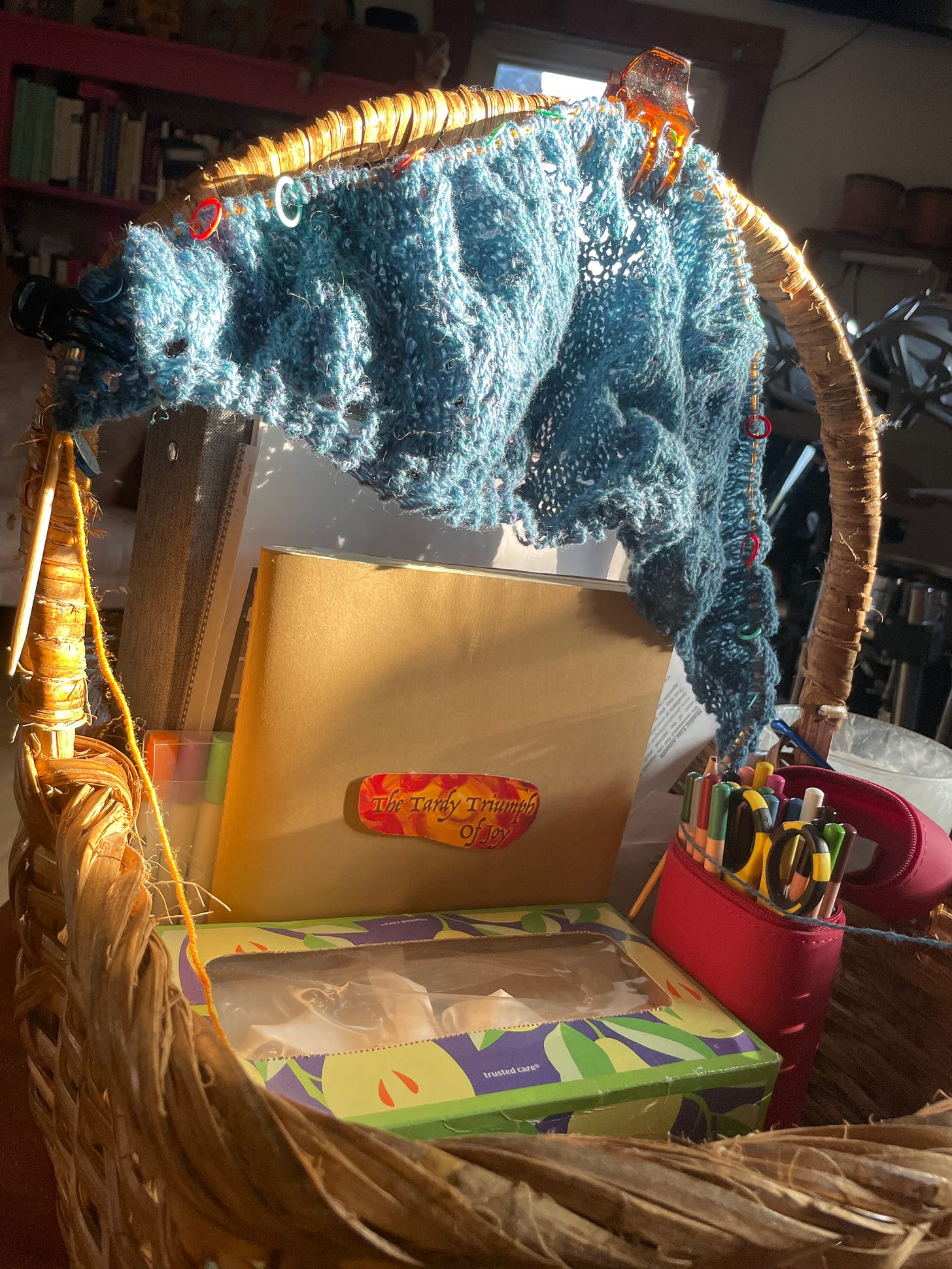 (My stash bins are so full that I could easily write a Substack called A Knitting from the Yarn of Yesterday. For those who are interested, it’s not too late to sign up for the Maine Yarn Cruise, an annual event that - this year - features 24 shops all over the state. The goal is to check into all of them by the middle of October. If you do, you get entered into a grand prize drawing. There are also other perks along the way. Personally, I don’t do it to win anything (and I am not being paid to promote it through this post). I like being in community with other knitters just as much as I do with other writers. The knit-along goes through Aug. 11, but it’s probably not too late to sign up for that, too.)